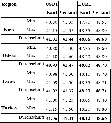Bargeldwechselkurse in Regionalbanken vom 03. Oktober