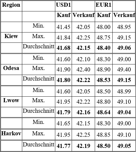 Bargeldwechselkurse in Regionalbanken vom 24. Oktober