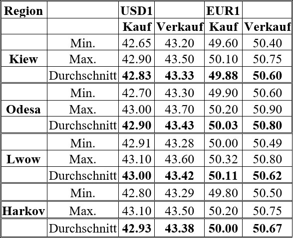 Bargeldwechselkurse in Regionalbanken vom 9. Januar