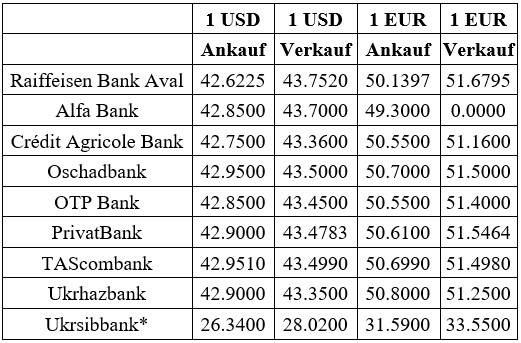 Daten: Nachrichtenagentur Interfax-Ukraine nach den Informationen auf den Webseiten ukrainischer Banken