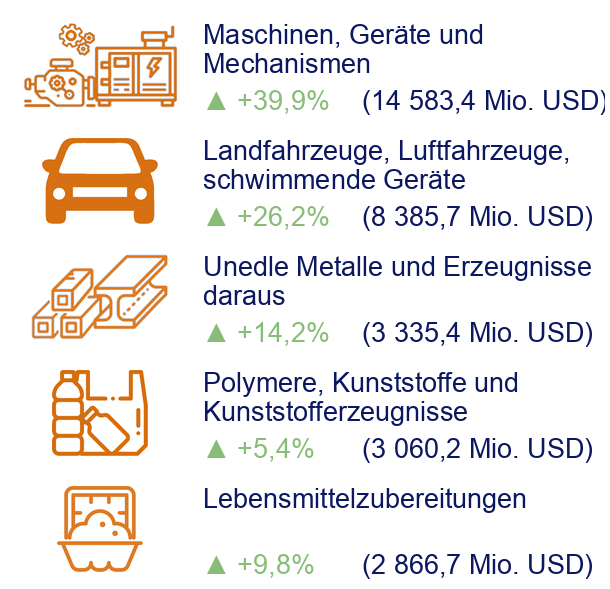 Dynamik der einführen von waren im januar bis september 2025 nach den wichtigsten artikeln im vergleich zum selben zeitraum 2023, %