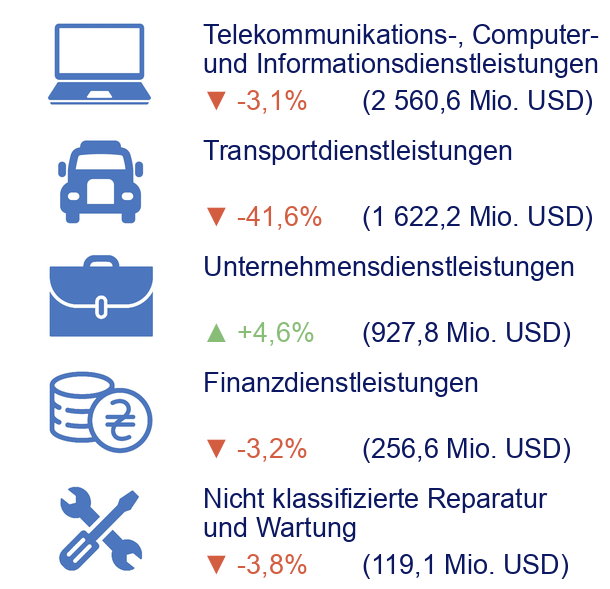 Dynamik des exports von dienstleistungen im januar-september 2025 nach den wichtigsten positionen im vergleich zum entsprechenden zeitraum des jahres 2024, %
