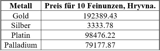 Offizielle Kurse von Bankmetallen vom 12. Januar