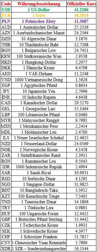 Offizielle Wechselkurse der Nationalbank der Ukraine zum 06. Oktober