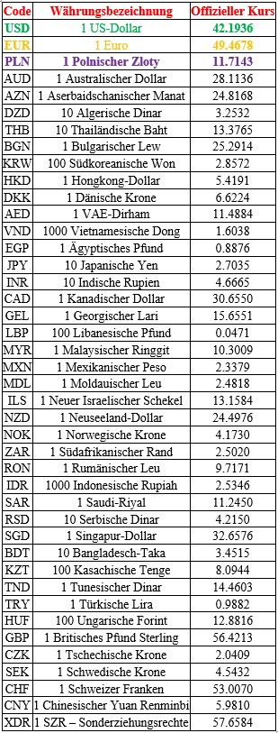 Offizielle Wechselkurse der Nationalbank der Ukraine zum 15. Dezember
