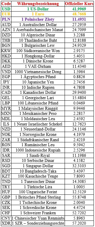 Offizielle Wechselkurse der Nationalbank der Ukraine zum 27. Oktober