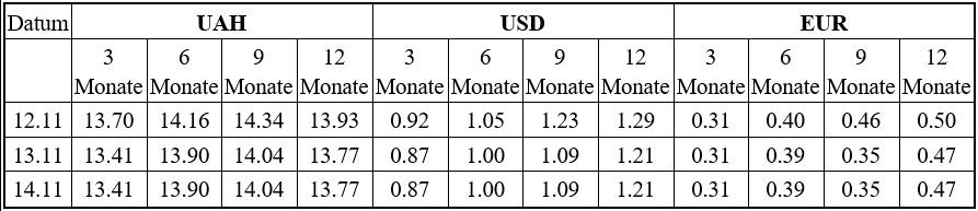 Ukrainischer Index der Depotsätze der natürlichen Personen per 14. November