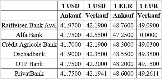 Daten: Nachrichtenagentur Interfax-Ukraine nach den Informationen auf den Webseiten ukrainischer Banken