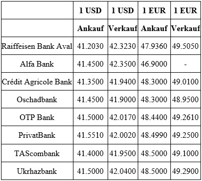 Daten: Nachrichtenagentur Interfax-Ukraine nach den Informationen auf den Webseiten ukrainischer Banken