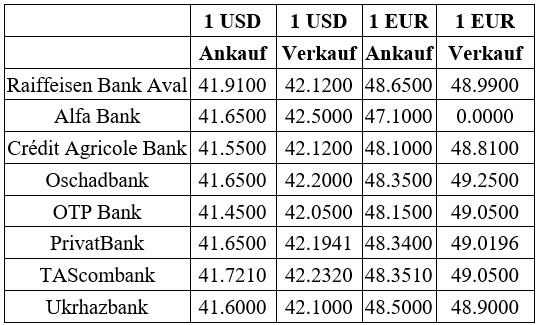 Daten: Nachrichtenagentur Interfax-Ukraine nach den Informationen auf den Webseiten ukrainischer Banken