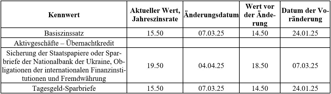 Zinssätze für Aktiv- und Passivgeschäfte der Nationalbank der Ukraine mit dem Stand vom 29 November