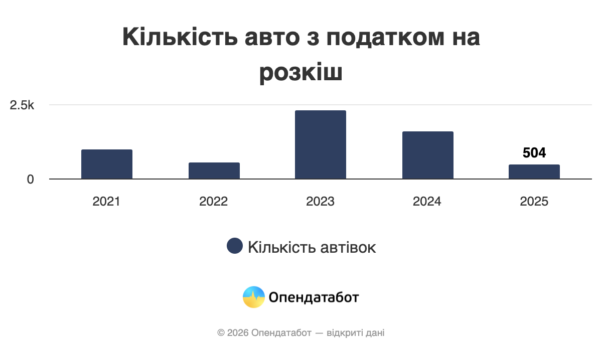 504 cars subject to the “luxury tax” were imported into Ukraine in 2025. This is 3.2 times less than in 2024. Overall, this is the lowest figure in the last five years.