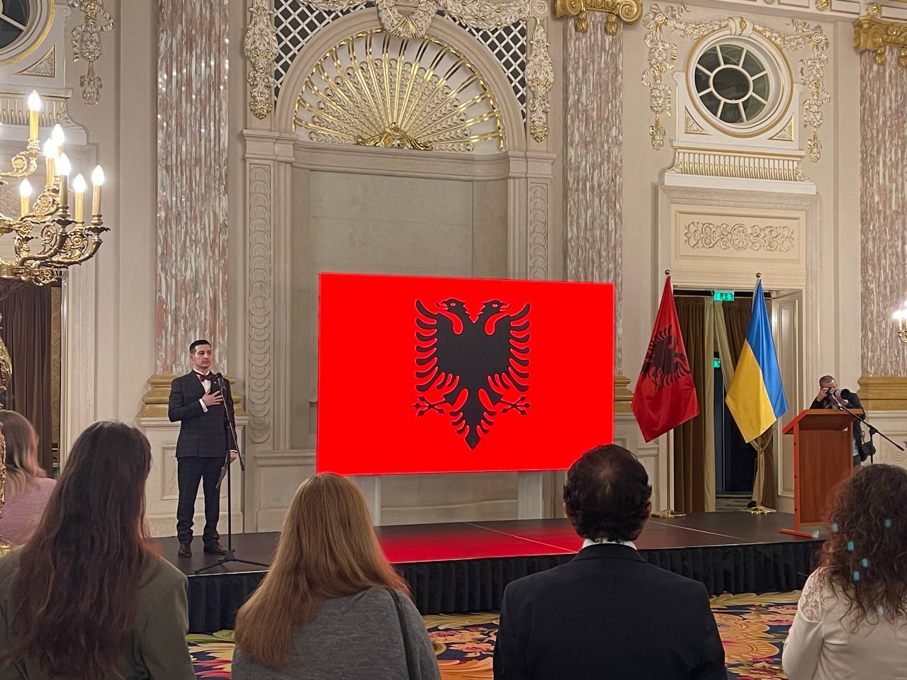 In his speech, Albanian Ambassador to Ukraine Ernal Filo recalled that on 28 November 1912, the creation of the Albanian state was proclaimed in the city of Vlora, and stressed that this year’s anniversary is being celebrated in Kyiv for the first time since the opening of the Albanian Embassy. He described this as a ‘new chapter in diplomatic relations’ and a symbol of the deepening of relations between the two countries and solidarity with Ukraine in the face of Russian aggression.