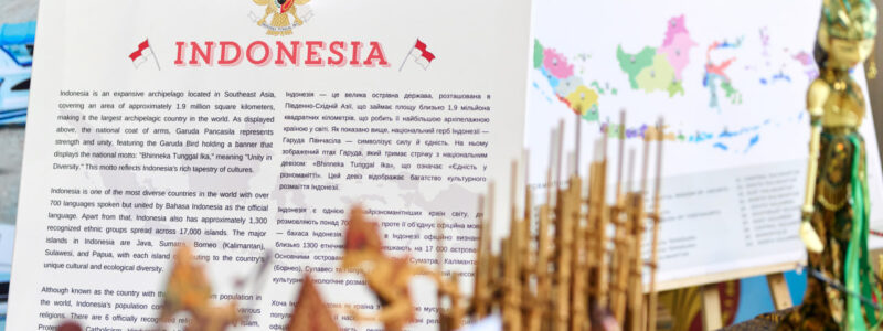 The program of the celebration included a presentation on batik, dance and vocal performances by students, as well as the performance of the national anthems of Indonesia and Ukraine on the Ukrainian bandura. An exhibition of batik and the tools used to create it was organized in the university lobby. The event concluded with a tasting of traditional Indonesian dishes—nasi goreng, mie goreng, bakwan, and kue lumpur.