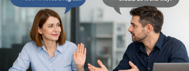 For many Ukrainian professionals, the barrier to disagreement is twofold. First, psychological: no one wants to be seen as a “difficult person.” Second, linguistic: when we lack the necessary vocabulary, we either remain silent or sound too harsh.
