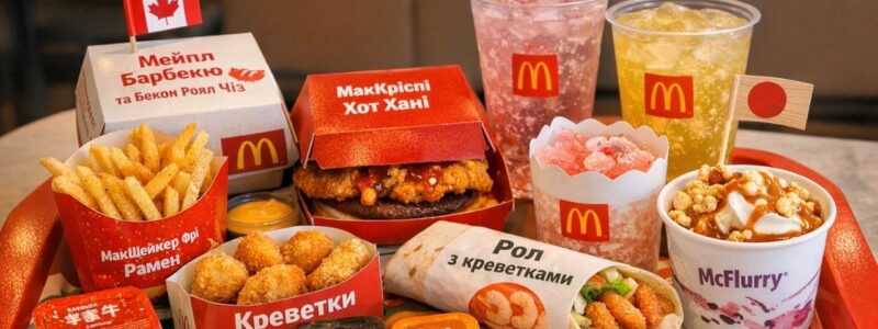 The Ukrainian menu will feature the Canadian “Maple BBQ & Bacon Royal Cheeseburger,” “Maple BBQ & Bacon Double Royal,” and “McCrispy Hot Honey,” a shrimp roll from Cyprus, shrimp from Croatia, “McShaker Fries” with ramen flavor from Japan, “McShaker Fries” with cheese and truffle flavor from Singapore, “McFlurry Popcorn Caramel” from Indonesia, and more.