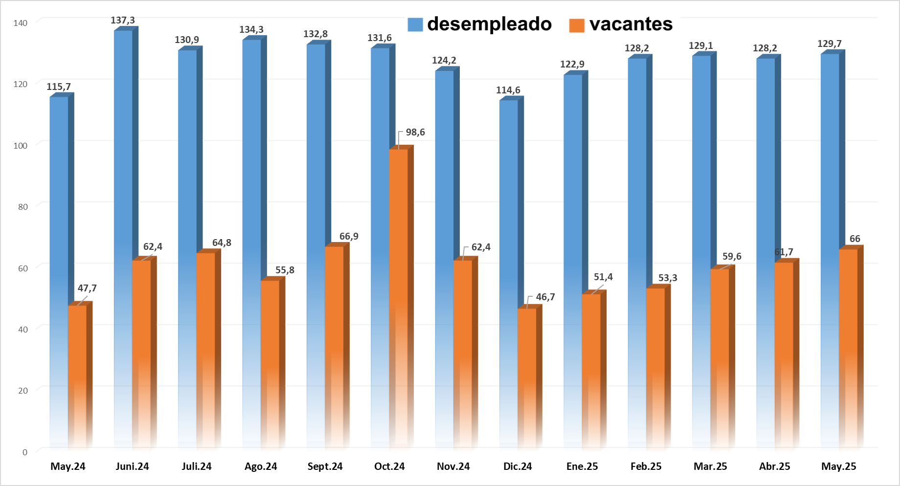 Parados y ofertas de empleo en 2024-2025 (miles de personas/empleos)
