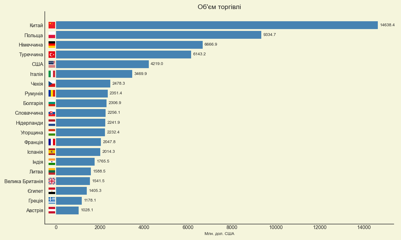 Географічна структура зовнішньої торгівлі України (обсяг торгівлі) січні-вересні 2025 року, млн. Долл США