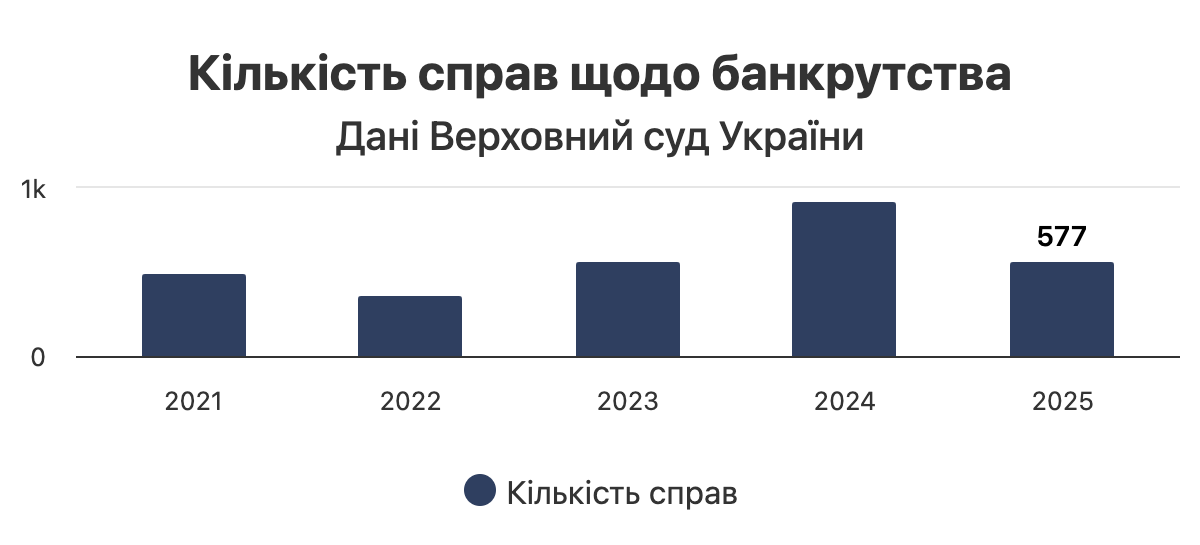 Кількість судових справ щодо банкрутства в Україні у 2021-2025 роках