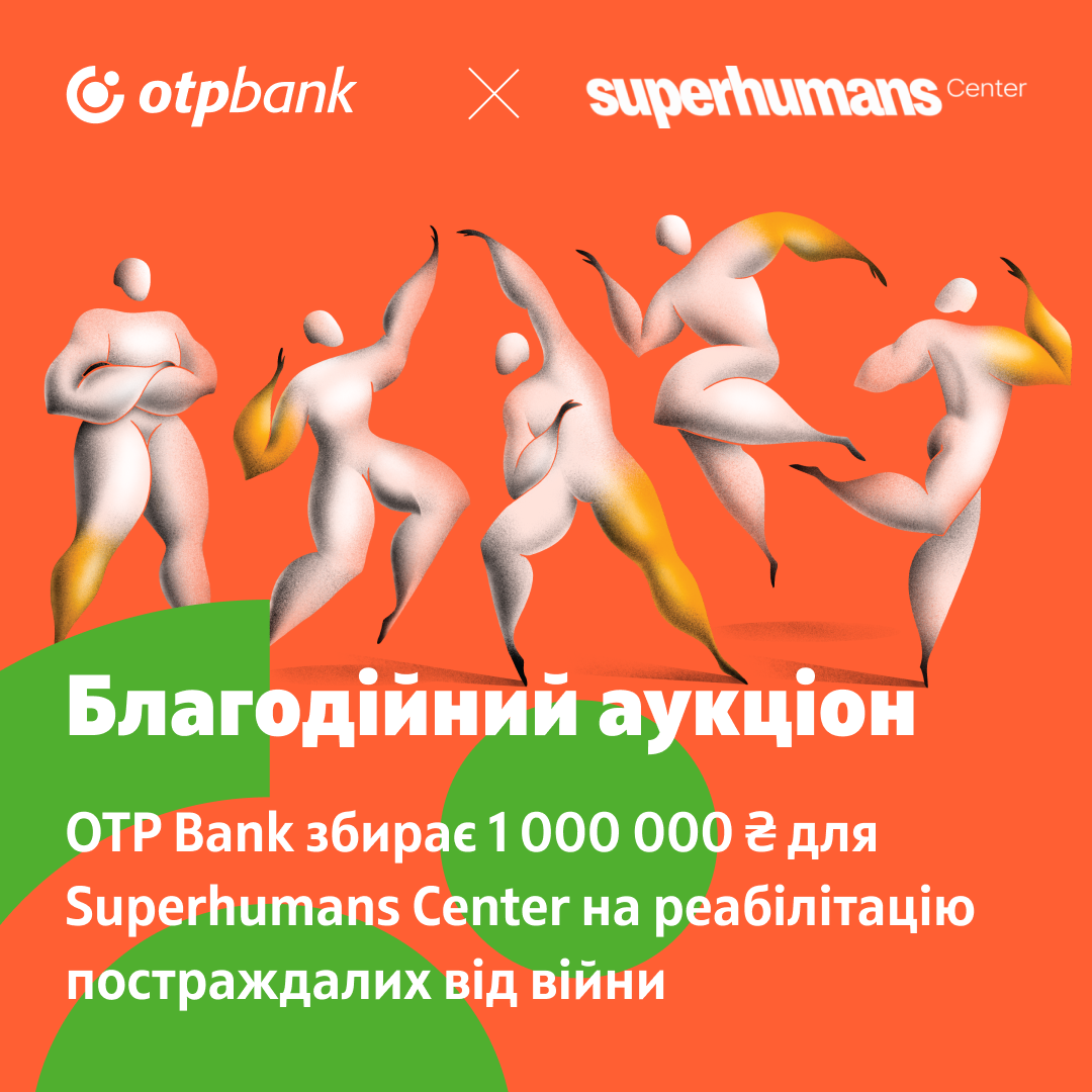 АТ «ОТП БАНК» та Superhumans Center розпочали проведення благодійного аукціону «Різдво для Суперів». Його мета – збір коштів, що будуть спрямовані на лікування та реабілітацію українців та українок, які отримали травми і втратили кінцівки на війні.
