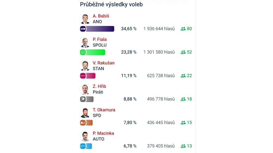 У Чехії на парламентських виборах 3–4 жовтня 2025 року перемогу здобув Андрій Бабіш і його партія ANO, яка отримала близько 34,7 % голосів. Партія Петра Фіали — яка раніше керувала коаліцією «Spolu» — посіла друге місце з ~23,4 % голосів. Результати виборів проаналізував інформаційно-аналітичний центр Experts Club.