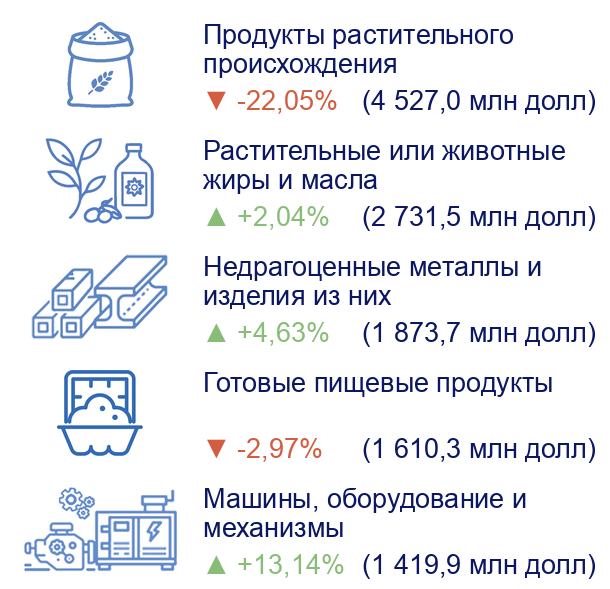 Динамика экспорта товаров в январе-мае 2025 года по наиважнейшим позициям по сравнению с аналогичным периодом 2024 года, %
