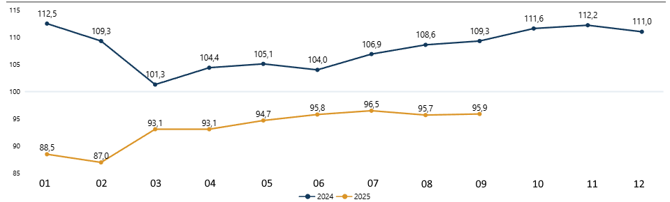 Изменение экспорта в % к предыдущему периоду в 2023-2024 году