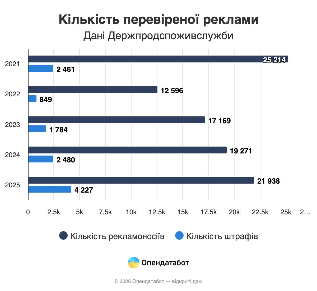 21 938 реклам проверили в прошлом году в Украине — на 14% больше, чем в 2024-м.
