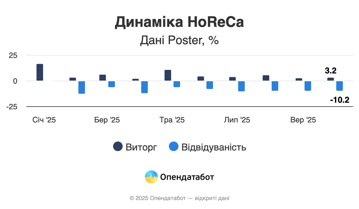 Несмотря на уменьшение прироста новых заведений, по данным украинского сервиса Poster выручка заведений общественного питания выросла на 6%, но назвать это значительным успехом нельзя. Посещаемость уменьшилась на 9%, поэтому рост происходит скорее благодаря подорожанию, чем увеличению клиентов. Средний чек в заведениях с начала года вырос на 11%.