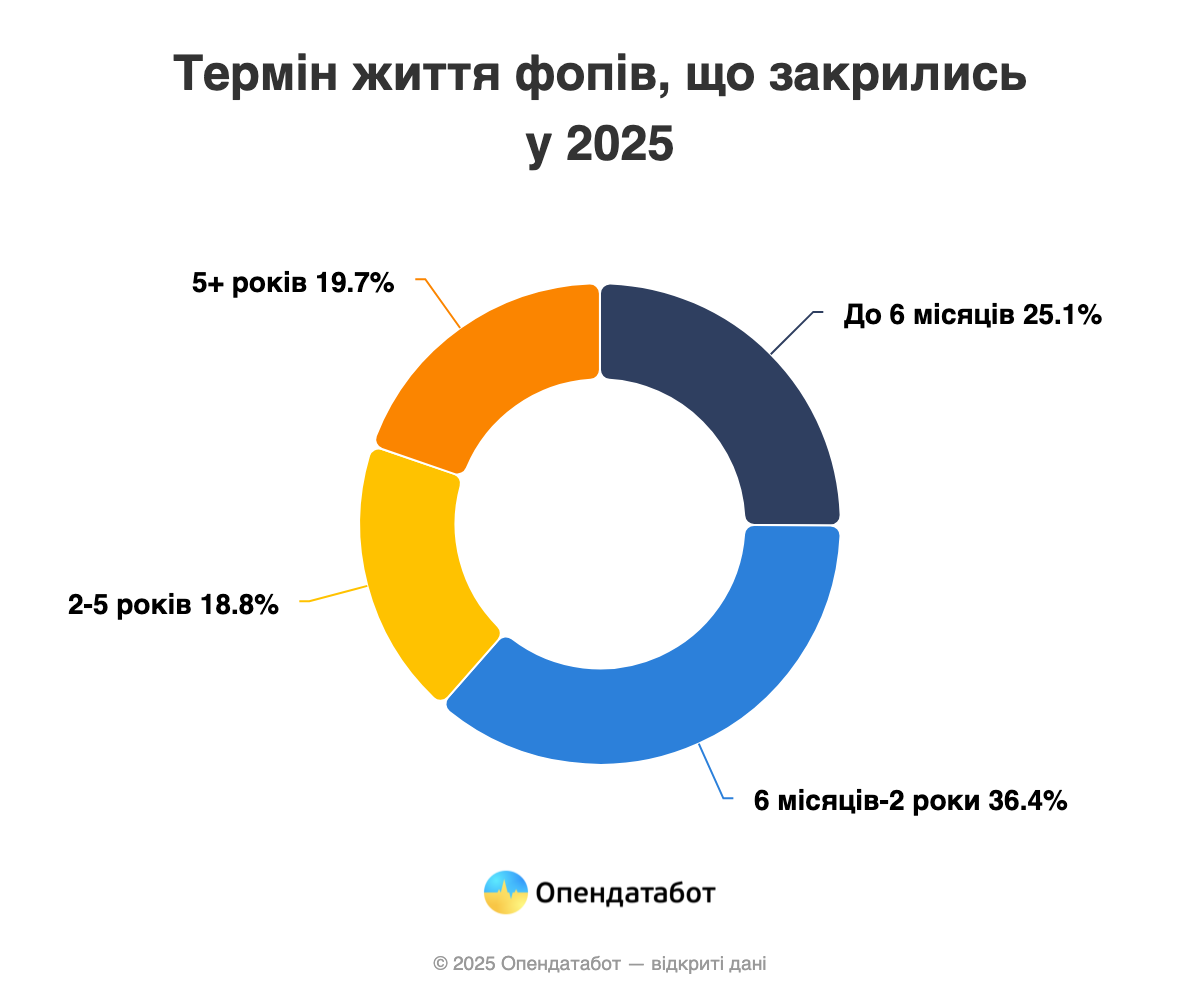 Четверть закрытых в этом году ФОПов проработала менее полугода. В целом медиана жизни малого и среднего бизнеса в HoReCa — 17 месяцев. Самый старый ресторанный ФОП, который прекратил деятельность в этом году, работал еще с 1992-го.