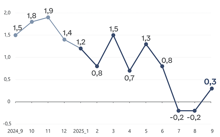 2024-2025 年居民消费价格变化, %