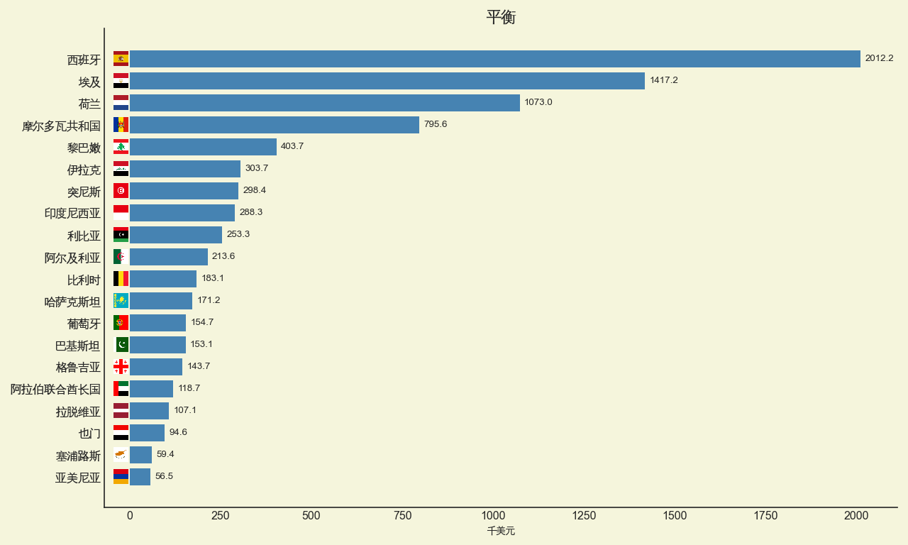 2025 年 1-5 月乌克兰外贸(顺差)的地域结构,百万美元(单位:千美元)。千美元