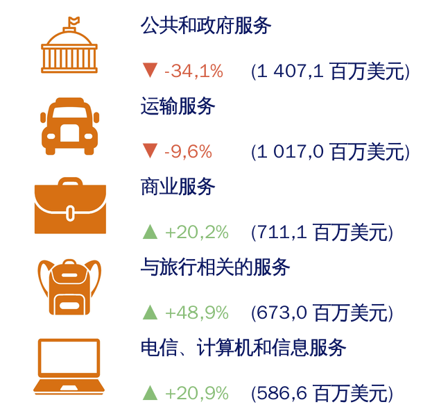 2025年1月至9月主要服务进口动态与2024年同期相比,%