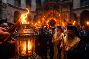 关于圣火,东正教传统中流传着一个广为人知的传说:人们认为它每年降临是上帝仁慈的征兆,而如果某年圣火未能降临,则会被视为重大动荡和世界末日的预兆。