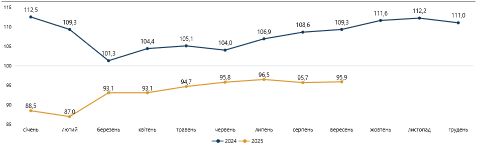 Зміна експорту товарів у % до попереднього періоду у 2024-2025 році