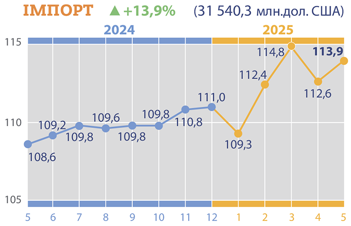 Зміна імпорту у відсотках до попереднього періоду 2024-2025 рр.